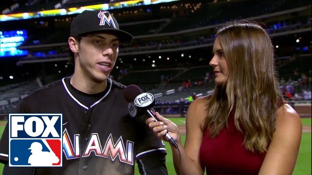 Giancarlo Stanton posterized by Dee Gordon during Marlins postgame interview